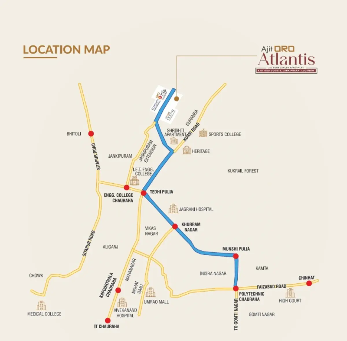 Check out Ajit Oro Atlantis in Jankipuram, one of the upcoming under-construction housing societies in Lucknow. There are apartments for sale in Ajit Oro Atlantis Jankipuram, Lucknow. This society will have all basic facilities and amenities to suit homebuyer’s needs and requirements. Brought to you by ORO Group, Ajit Oro Atlantis is scheduled for possession in Oct, 2027.