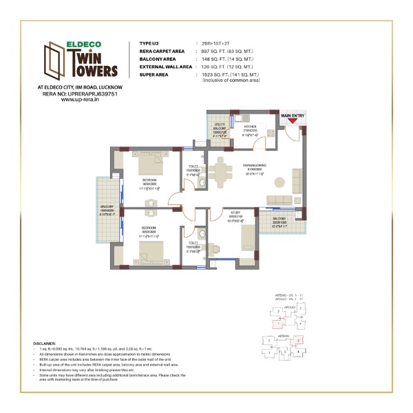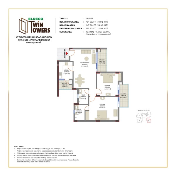 Welcome to the Eldeco Twin Towers- Artemis & Apollo- named after the famous twins from the Greek mythology. Now get the touch of structural excellence, polished exteriors, spacious balconies, and a plus looking ambience enhanced by an exclusive entrance to uplift your living from the ordinary. The towers with 2& 3 BR apartments are situated at a strategic location in the fully inhabited Eldeco City Township with its well-developed infrastructure, resident-friendly facilities, lifestyle amenities and abundant greenery. Residing here translates to enjoying a reign over a legion of privileges with a blending of space and privacy.